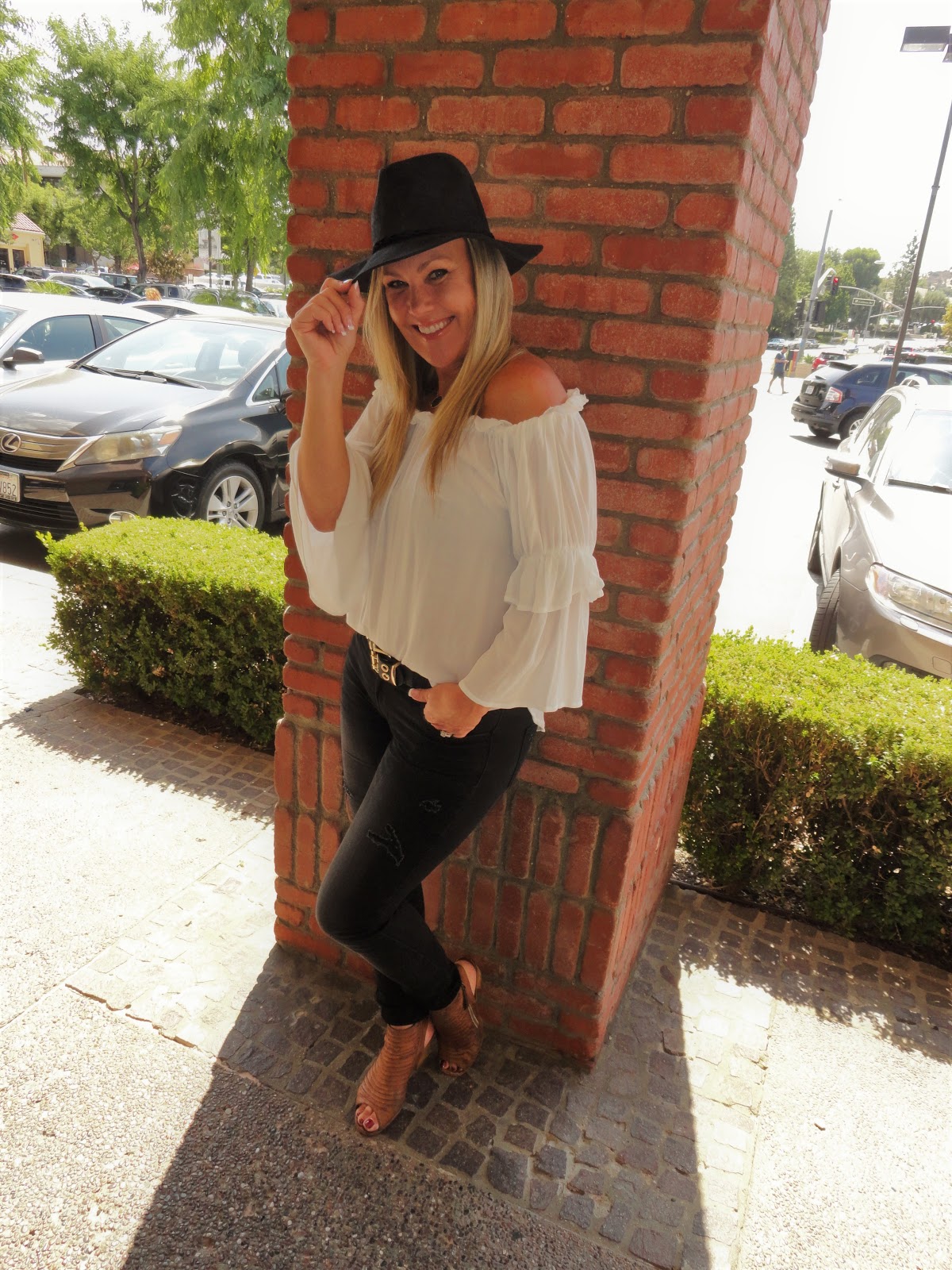 You know those days when you're just feeling good? I'm having one! Positive attitude, smile on my face, hair blown out and cutest outfit ever help me to take on the day with full force. This sexy off the shoulder top comes in a variety of colors and in stock now at Blush Boutique Calabasas and Thousand Oaks. Every woman needs these cute ripped Flying Monkey jeans as well. We also have accessories galor! So if you're in the mood for a new outfit or cute pair of earings... come see us today!